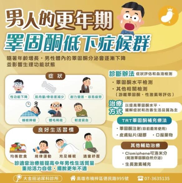 一般男性到40歲以後,製造男性賀爾蒙(睪固酮)的機能會逐漸衰退,因上述變化所產生的身心不適,就稱為「男性更年期」