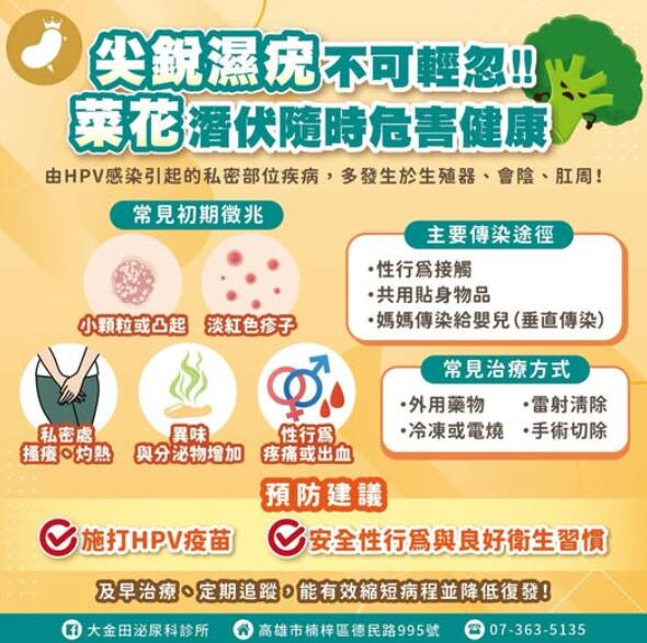 菜花由人類乳突病毒 HPV 感染引起,是常見的私密部位疾病